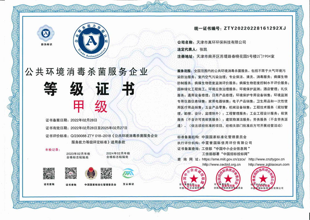 公共環境消毒甲級證書